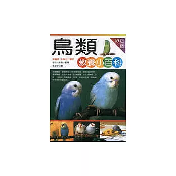這是針對目前想要飼養鸚鵡、文鳥、金絲雀等鳥類,或已經飼養的人所寫的專業寶典,內容精采,不容錯過!本書利用許多彩色的篇幅,介紹這些令人忍不住想跟牠耳鬢廝磨一番的可愛鳥兒,並透過精采的照片與插圖,詳細說明鸚鵡、文鳥、金絲雀、桃面愛情鳥、十姊妹、斑胸草雀、紅雀、紅嘴相思鳥等飼養、繁殖和訓練方法。希望經由本書可讓鳥主人目睹雛鳥的成長過程,讓牠站在你的肩上或手心一起嬉戲,讓小鳥們的身影豐富你的生命!