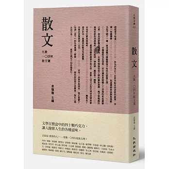 ★??? 由知名散文家袁瓊瓊擔任主編,嚴選本年度文壇佳作,一本書就可讀遍全年度散文精品。